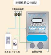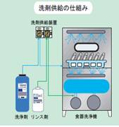 B洗剤供給装置の電源を切る、もしくは洗剤の容器から洗剤供給装置を外し、 |