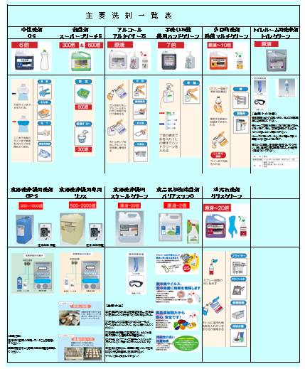主要な「使用洗剤一覧表」